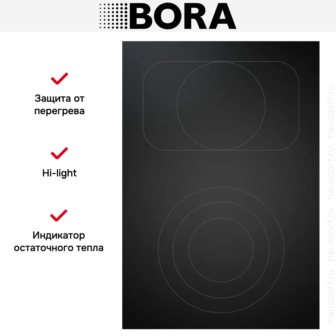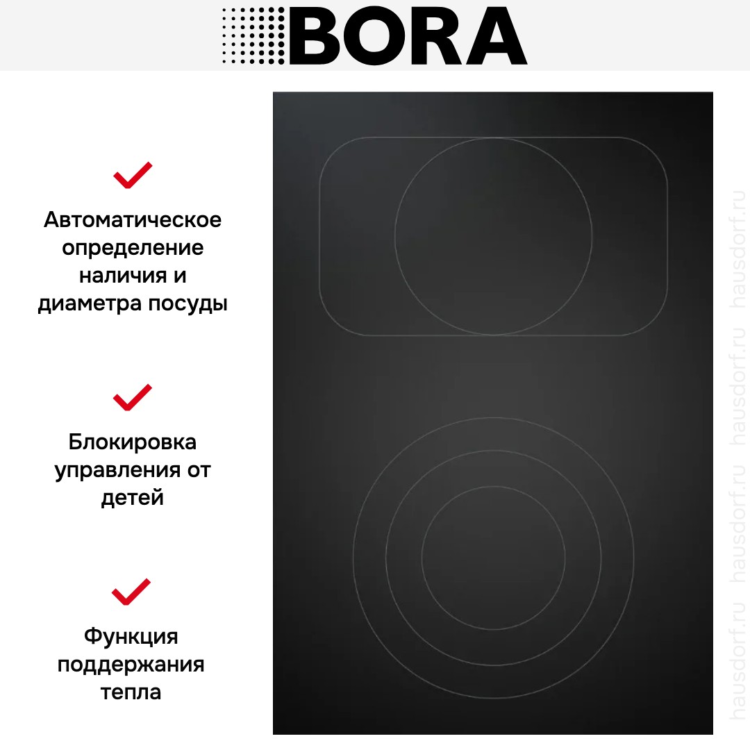 Модель БОРА PKCB3AB входит в дизайн-линейку: Professional 3.0. Цвет — черный. Благодаря отсутствию рамки она отлично впишется в интерьер и не займет лишнее место на столешнице, которое можно использовать для работы. Материал самой поверхности: стеклокерамика. Управление этой моделью электронное. Для переключения уровней нагрева, выбора функций используются следующие переключатели: поворотные. Продвинутая система контроля за прибором делают его современным и отвечающим на главные запросы покупателя.