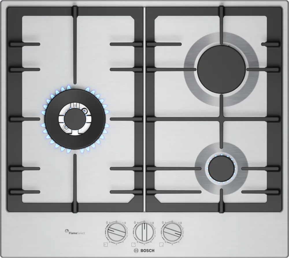 Технология FlameSelect в современных газовых варочных панелях Bosch обеспечивает ступенчатую регулировку пламени на 9 предустановленных уровнях. Конфорки с FlameSelect позволяют точно задавать интенсивность нагрева поворотом специального переключателя, не требуя визуального контроля.