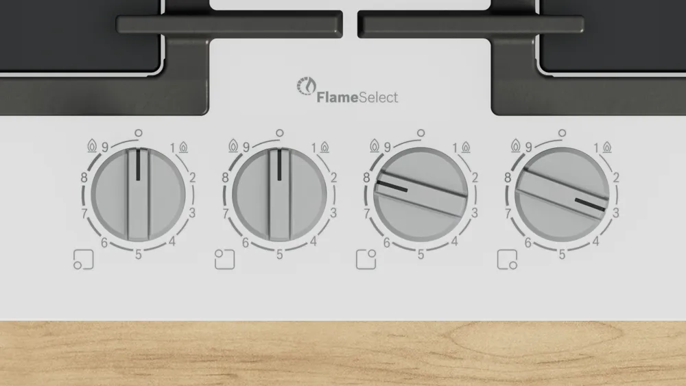 Технология FlameSelect в современных газовых варочных панелях Bosch обеспечивает ступенчатую регулировку пламени на 9 предустановленных уровнях. Конфорки с FlameSelect позволяют точно задавать интенсивность нагрева поворотом специального переключателя, не требуя визуального контроля.