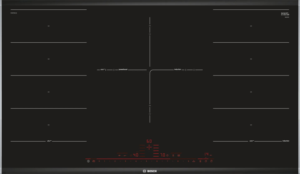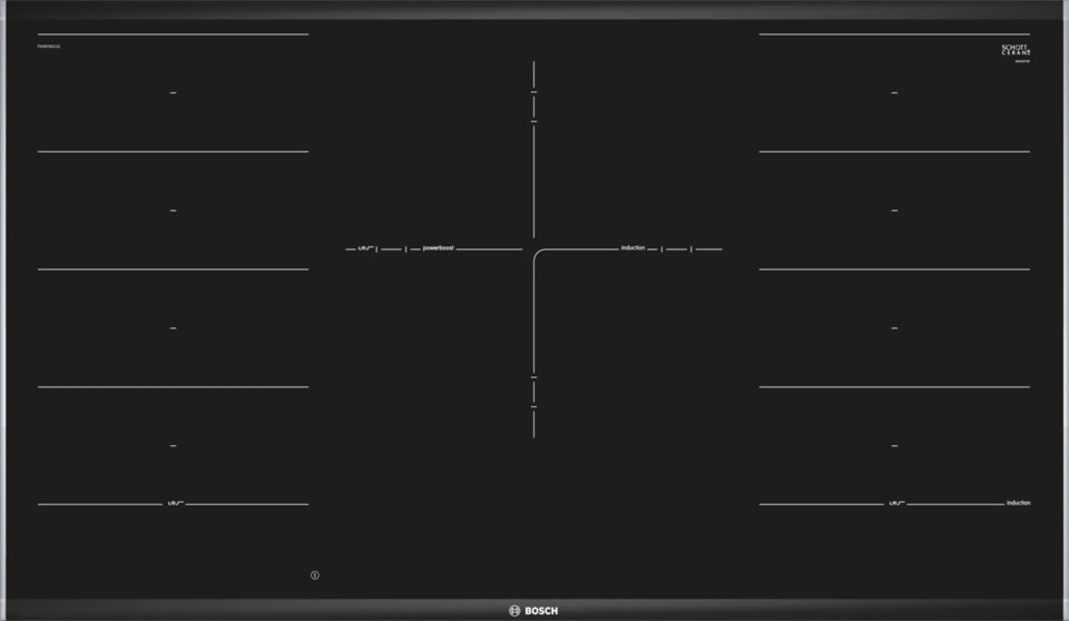 Зона FlexInduction в индукционных варочных панелях Bosch предназначается для объединения двух соседних зон нагрева в одну зону увеличенного размера с единым управлением, которая может служить для приготовления нескольких блюд одновременно или для готовки в посуде произвольной формы и диаметра.