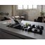 Вытяжка, встроенная в варочную панель — достаточно удобный вариант, позволяющий сэкономить место в кухне. Такая конструкция позволяет лучше улавливать испарения, не давая им распространяться по всему помещению, и способствует более качественной очистке воздуха. Большинство подобных моделей может работать только в режиме рециркуляции воздуха, с удалением капель жира, сажи, неприятных запахов при помощи системы фильтров. Работу в режиме отвода загрязненного воздуха через систему вентиляции организовать довольно сложно, поскольку вытяжка располагается низко над полом. Часто варочная панель находится на кухонном острове, что также мешает присоединению к вентиляции. Еще одна особенность подобных моделей состоит в том, что под варочной панелью нельзя разместить духовку или другую технику, так как место будет занято.