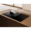 Вытяжка, встроенная в варочную панель — достаточно удобный вариант, позволяющий сэкономить место в кухне. Такая конструкция позволяет лучше улавливать испарения, не давая им распространяться по всему помещению, и способствует более качественной очистке воздуха. Большинство подобных моделей может работать только в режиме рециркуляции воздуха, с удалением капель жира, сажи, неприятных запахов при помощи системы фильтров. Работу в режиме отвода загрязненного воздуха через систему вентиляции организовать довольно сложно, поскольку вытяжка располагается низко над полом. Часто варочная панель находится на кухонном острове, что также мешает присоединению к вентиляции. Еще одна особенность подобных моделей состоит в том, что под варочной панелью нельзя разместить духовку или другую технику, так как место будет занято.