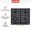Выбор газовой варочной панели чаще всего обусловлен тем, что в частный дом или квартиру проведен именно газ в качестве обогрева. Работать с этой моделью довольно просто, так как мощность нагрева видна невооруженным взглядом — по силе огня в горелке. Количество конфорок в этой модели: 4. Горелки с тройной короной имеют несколько ступеней нагрева — в зависимости от них образуется несколько кругов пламени.