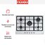 Выбор газовой варочной панели чаще всего обусловлен тем, что в частный дом или квартиру проведен именно газ в качестве обогрева. Работать с этой моделью довольно просто, так как мощность нагрева видна невооруженным взглядом — по силе огня в горелке. Количество конфорок в этой модели: 5. Горелки с двойной короной позволяют увеличивать мощность нагрева в зависимости от диаметра посуды.