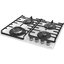 Выбор газовой варочной панели чаще всего обусловлен тем, что в частный дом или квартиру проведен именно газ в качестве обогрева. Работать с этой моделью довольно просто, так как мощность нагрева видна невооруженным взглядом — по силе огня в горелке. Количество конфорок в этой модели: 4. Горелки с двойной короной позволяют увеличивать мощность нагрева в зависимости от диаметра посуды.