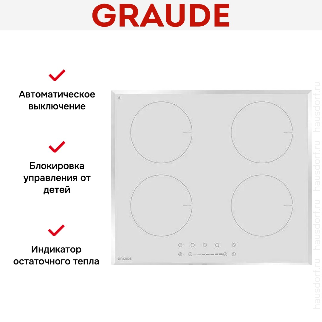 Варочная поверхность Graude IK 60.1 WF снабжена сенсорной контрольной панелью для комфортной регулировки параметров приготовления. Модель предусматривает наличие таймера и защитной технологии автоотключения. Энергоэффективная индукционная технология обеспечивает быстрое нагревание посуды. Прибор имеет стандартные размеры, а значит подойдет для установки в большинство готовых вырезов в столешницах. Красивый и лаконичный белый цвет сочетается со многими стилевыми вариантами.