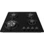 Независимая панель шириной 58 см без труда устанавливается в стандартную столешницу. Модель оснащена съемными чугунными решетками: они не мешают очистке поверхности и гарантируют устойчивое размещение посуды. Стеклянную поверхность можно чистить любыми неабразивными средствами, а решетки — промывать теплой водой.