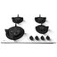 Панель укомплектована двумя газовыми конфорками быстрого нагрева и одной экономичной. Передняя левая — конфорка WOK. Используйте ее для быстрой обжарки при высокой температуре или для приготовления блюд в глубокой посуде с толстыми стенками. Она подойдет также для приготовления блюд восточной кухни в сковороде с округлым дном. Механические поворотные переключатели черного цвета с бесступенчатой регулировкой мощности пламени позволят подобрать подходящую температуру для готовки любых блюд. Их удобное расположение уменьшает риск ожога. При угасании пламени в целях безопасности подача газа перекрывается электромагнитным клапаном. В комплект входят также форсунки для подключения к баллонному газу.