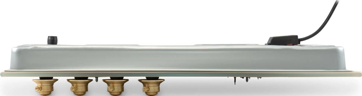 Цвет — бежевый. Благодаря отсутствию рамки она отлично впишется в интерьер и не займет лишнее место на столешнице, которое можно использовать для работы. Открытый огонь не страшен ни вашей посуде, ни вам, так как горелки надежно закрыты решетками. Материал самой поверхности: закаленное стекло. Управление этой моделью механическое. Для переключения уровней нагрева, выбора функций используются следующие переключатели: поворотные. Простая система контроля за прибором делают его более универсальным, ведь разобраться сможет кто угодно.