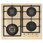 Цвет — бежевый. Благодаря отсутствию рамки она отлично впишется в интерьер и не займет лишнее место на столешнице, которое можно использовать для работы. Открытый огонь не страшен ни вашей посуде, ни вам, так как горелки надежно закрыты решетками. Материал самой поверхности: закаленное стекло. Управление этой моделью механическое. Для переключения уровней нагрева, выбора функций используются следующие переключатели: поворотные. Простая система контроля за прибором делают его более универсальным, ведь разобраться сможет кто угодно.