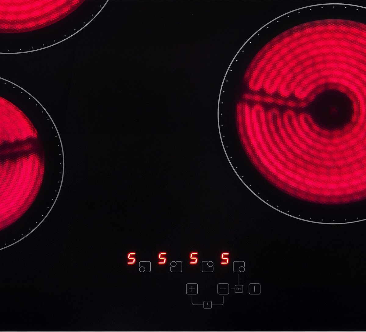 Электронное управление предполагает, что варочная поверхность становится совершенно гладкой и не имеет выступов. Установка параметров работы производится при помощи сенсоров, к которым иногда могут добавляться кнопки экстренного отключения. Такую панель для очистки достаточно протереть влажной салфеткой. На поверхность из стекла и стеклокерамики наносятся обозначения: для регулировки степени нагрева, задания дополнительных опций достаточно прикосновения.
