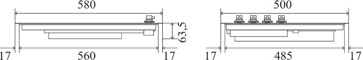 Стандартная ширина устройства составляет около 59–60 см: таковы наиболее востребованные четырехконфорочные модели. Подобный размер облегчает встраивание варочной панели в стандартную кухонную столешницу.