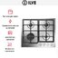Выбор газовой варочной панели чаще всего обусловлен тем, что в частный дом или квартиру проведен именно газ в качестве обогрева. Работать с этой моделью довольно просто, так как мощность нагрева видна невооруженным взглядом — по силе огня в горелке. Количество конфорок в этой модели: 4. Горелки с двойной короной позволяют увеличивать мощность нагрева в зависимости от диаметра посуды.