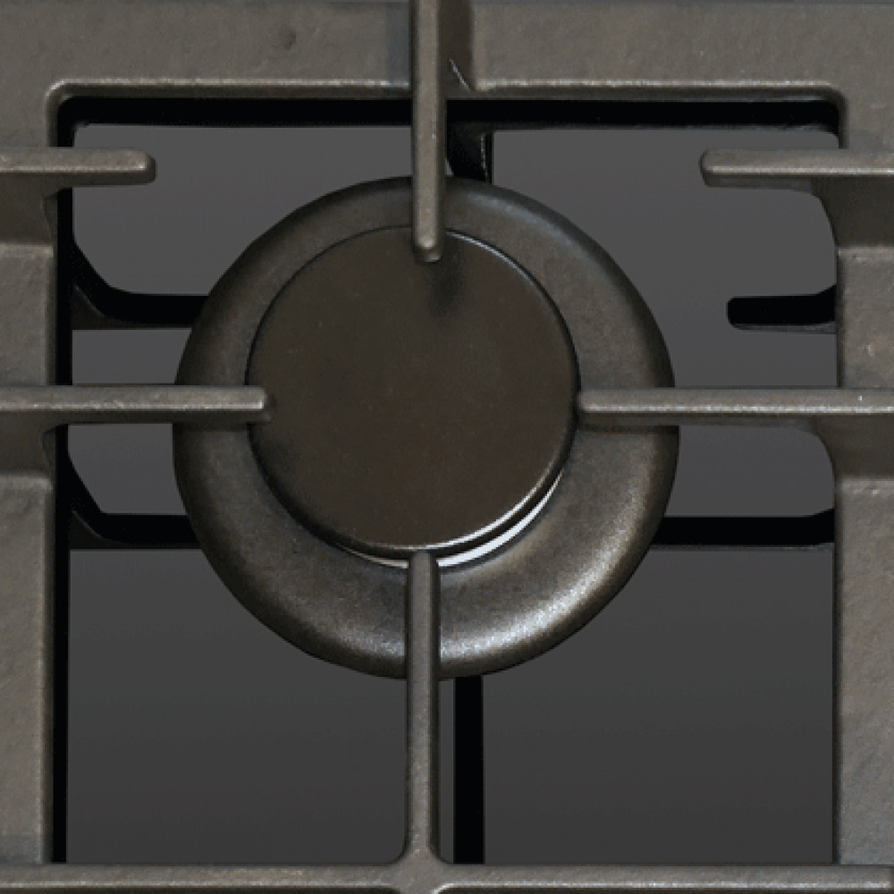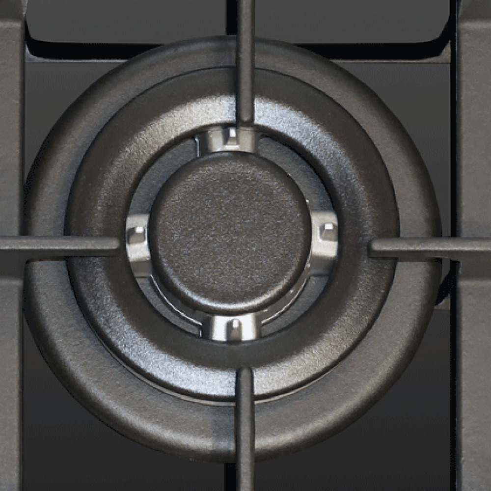 Газовая горелка с пламенем в три ряда. Благодаря этому дно кастрюли или сковороды прогревается равномерно, нагревается быстрее.