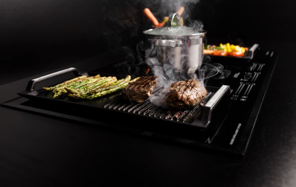Вы можете объединить две и более конфорки в одну. Благодаря этому приготовление в нестандартной, овальной или крупной посуде не представляет проблем.