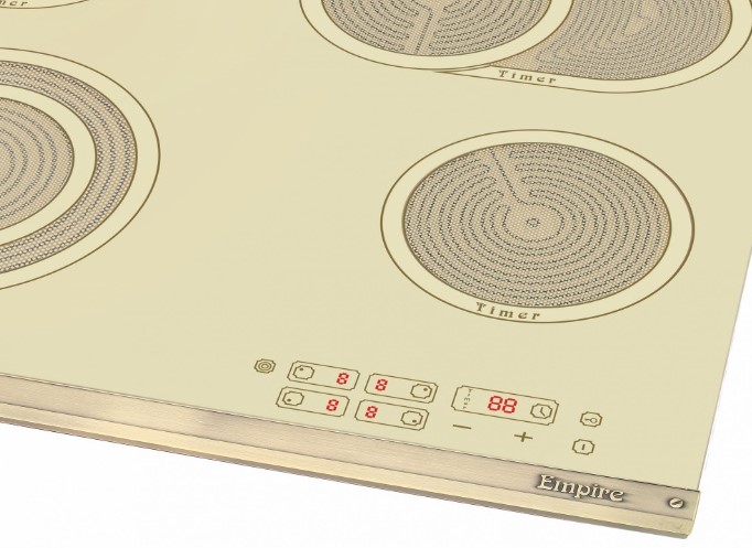 Модель Кайзер KCT 6185 ElfEm входит в дизайн-линейку: Empire. Цвет — слоновая кость. Благодаря рамке она отделена от рабочей зоны и прочнее закреплена на столешнице. Материал самой поверхности: стеклокерамика. Управление этой моделью электронное. Для переключения уровней нагрева, выбора функций используются следующие переключатели: сенсорные/TouchControl. Продвинутая система контроля за прибором делают его современным и отвечающим на главные запросы покупателя.