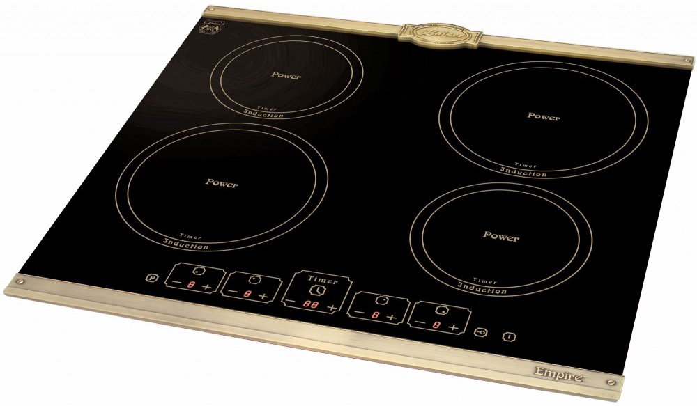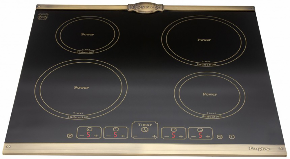 Для варочных панелей в стиле кантри, ампир или классическом характерны латунные ручки из сплава меди и цинка, которые смотрятся благородно и выигрышно. Реже производятся модели, имеющие золотистую или медную фурнитуру.