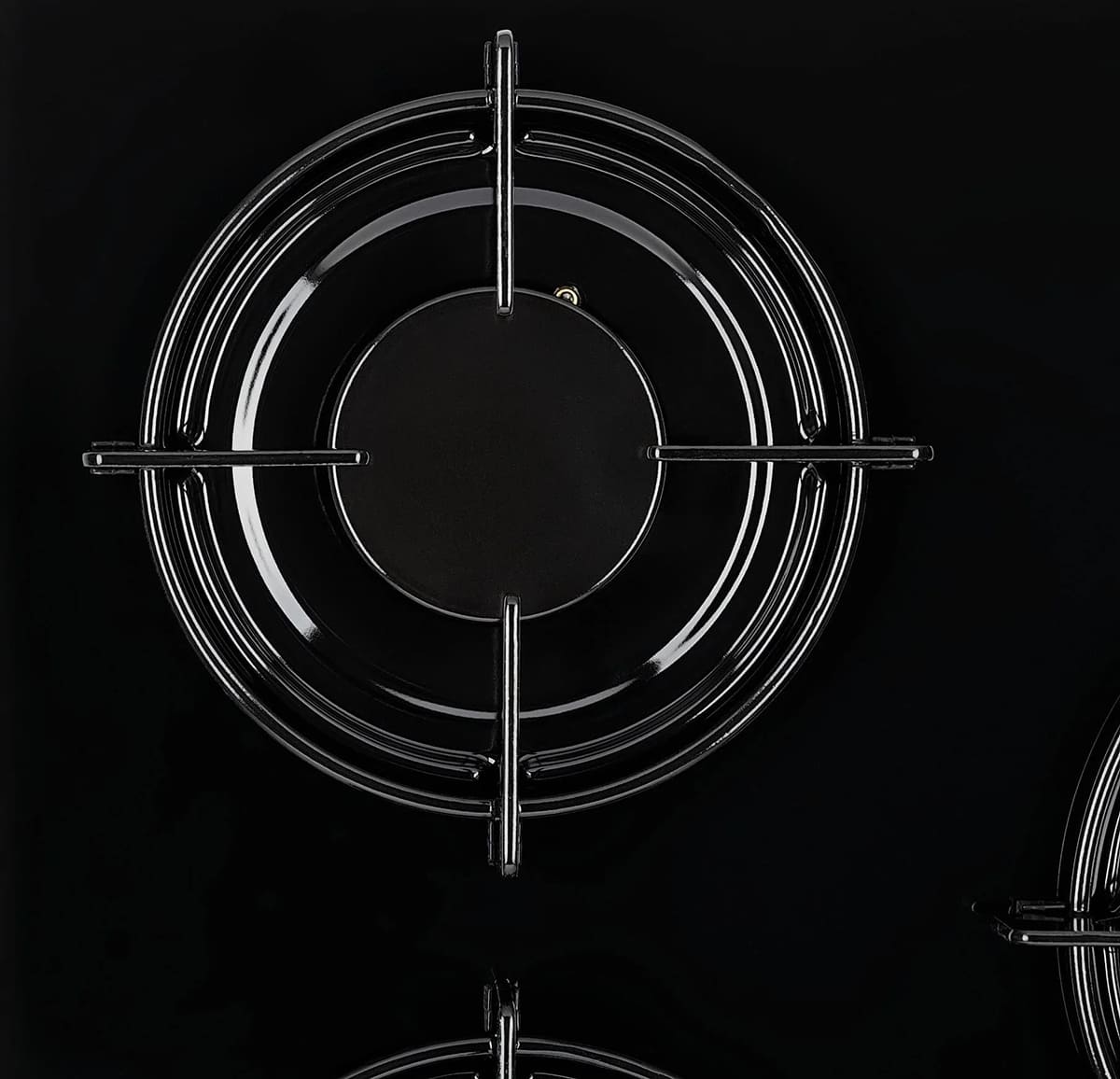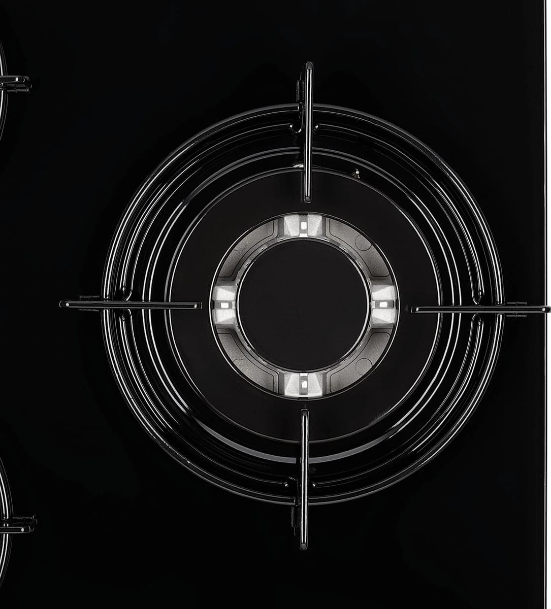 Лаконичный чёрный дизайн с гладкой поверхностью и аккуратно расположенными эмалированными решётками придаёт модели современный и утончённый вид. Она гармонично вписывается как в классические, так и в современные интерьеры, подчёркивая вкус владельца. Газовые горелки обеспечивают мгновенный нагрев, равномерное распределение пламени и высокую энергоэффективность, что особенно ценится при интенсивной готовке.