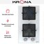 Двухконфорочные панели шириной около 30 см часто можно комбинировать с другими в дизайне «Домино». Такие панели нередко выбирают покупатели, которые пользуются для приготовления пищи другой техникой — мультиварками, духовками, СВЧ-печами. Конфорки при этом могут располагаться как в два ряда, так и в один, а форма панели может быть как привычной прямоугольной, так и овальной или в виде капли.