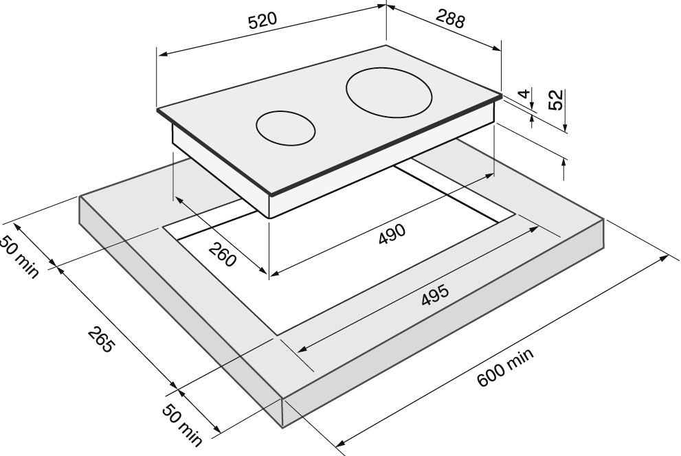 Глубина варочной панели представляет собой расстояние от ближайшей к пользователю ее точки до самой дальней. В первую очередь глубина определяется соответствующими размерами столешницы, куда варочная панель будет встроена, и уже во вторую — количеством и расположением конфорок.