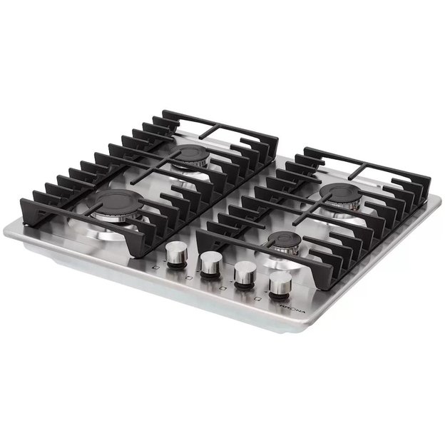 Выбор газовой варочной панели чаще всего обусловлен тем, что в частный дом или квартиру проведен именно газ в качестве обогрева. Работать с этой моделью довольно просто, так как мощность нагрева видна невооруженным взглядом — по силе огня в горелке. Количество конфорок в этой модели: 4.