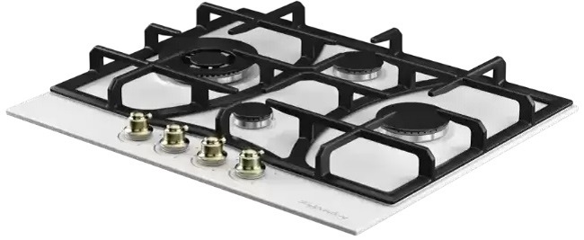 Выбор газовой варочной панели чаще всего обусловлен тем, что в частный дом или квартиру проведен именно газ в качестве обогрева. Работать с этой моделью довольно просто, так как мощность нагрева видна невооруженным взглядом — по силе огня в горелке. Количество конфорок в этой модели: 4.