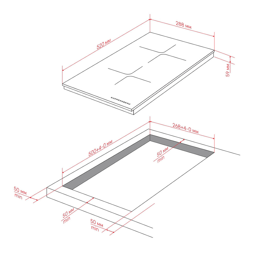Габариты прибора составляют всего 5,9 см в высоту, 28,8 см в ширину и 52 см в глубину, что делает его идеальным выбором для небольших кухонь или компактных интерьеров. Несмотря на скромные внешние размеры, панель предлагает полный функционал, необходимый для повседневного приготовления. Для корректного встраивания требуется ниша шириной 26,8 см и глубиной 50 см, что обеспечивает плотную посадку, эстетичный внешний вид и надёжную фиксацию.