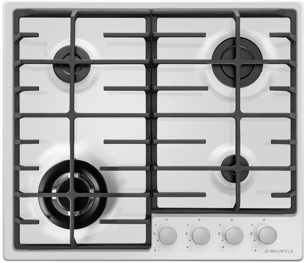 Выбор газовой варочной панели чаще всего обусловлен тем, что в частный дом или квартиру проведен именно газ в качестве обогрева. Работать с этой моделью довольно просто, так как мощность нагрева видна невооруженным взглядом — по силе огня в горелке. Количество конфорок в этой модели: 4.
