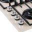 Maunfeld EGHG.64.63CBG/G — газовая варочная панель шириной 60 см с четырьмя конфорками и электроподжигом. Поверхность изготовлена из закаленного стекла бежевого цвета. Механические поворотные переключатели снабжены не нагревающимися ручками. Раздельная чугунная решетка поможет устойчиво разместить посуду. Для приготовления пищи предусмотрены конфорка WOK мощностью 3 кВт, две стандартные и одна маломощная конфорки. Боковое расположение панели управления способствует безопасности использования. Функция «Газ-контроль» гарантирует прекращение подачи газа при угасании пламени.