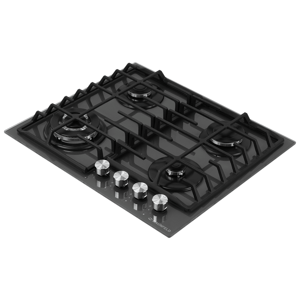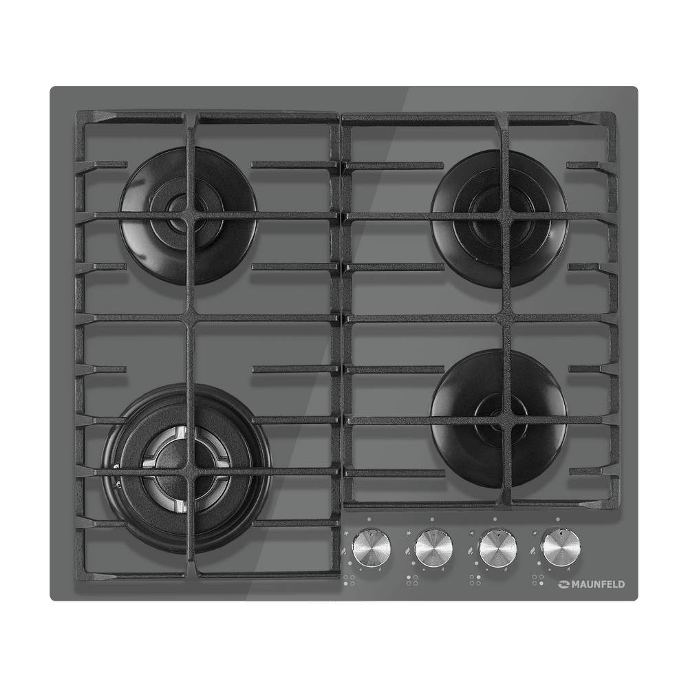 Выбор газовой варочной панели чаще всего обусловлен тем, что в частный дом или квартиру проведен именно газ в качестве обогрева. Работать с этой моделью довольно просто, так как мощность нагрева видна невооруженным взглядом — по силе огня в горелке. Количество конфорок в этой модели: 4.
