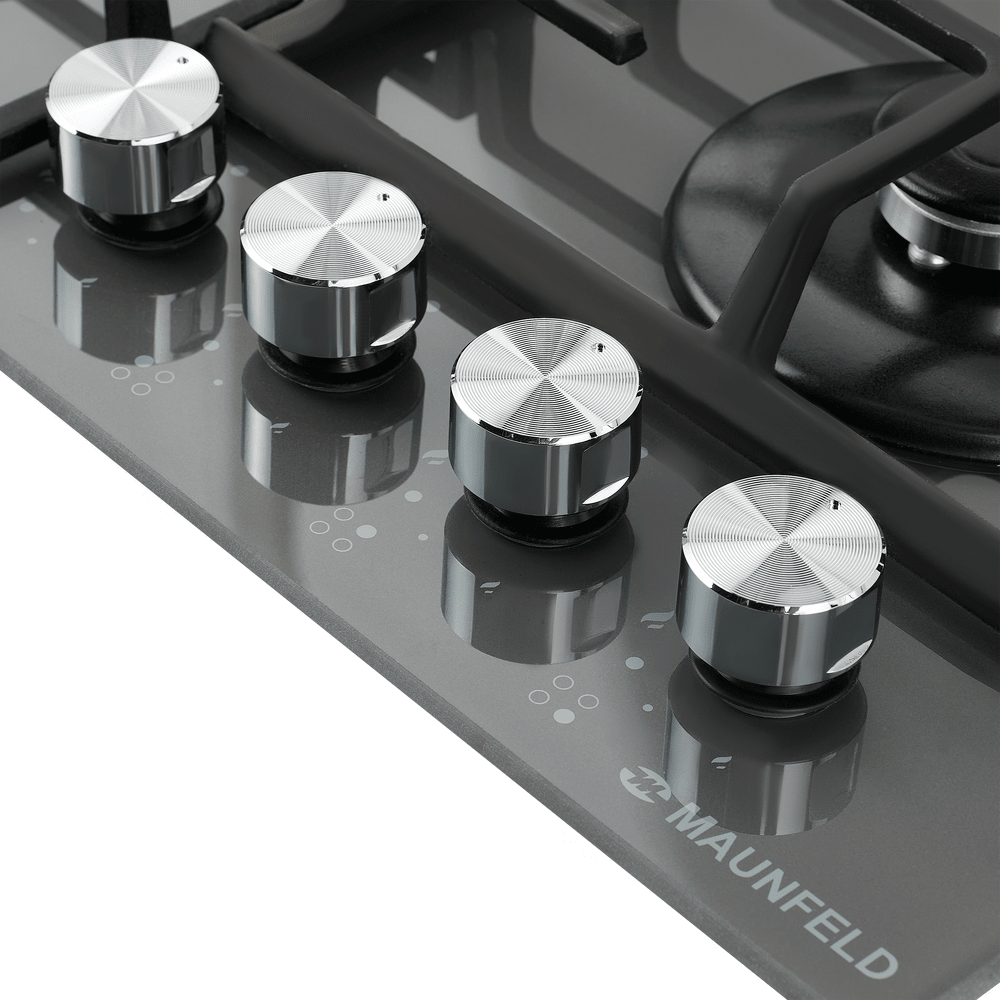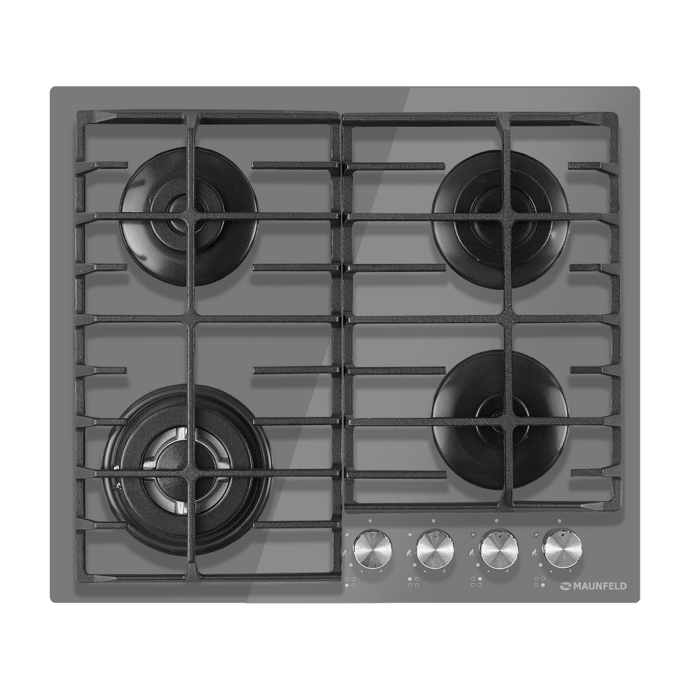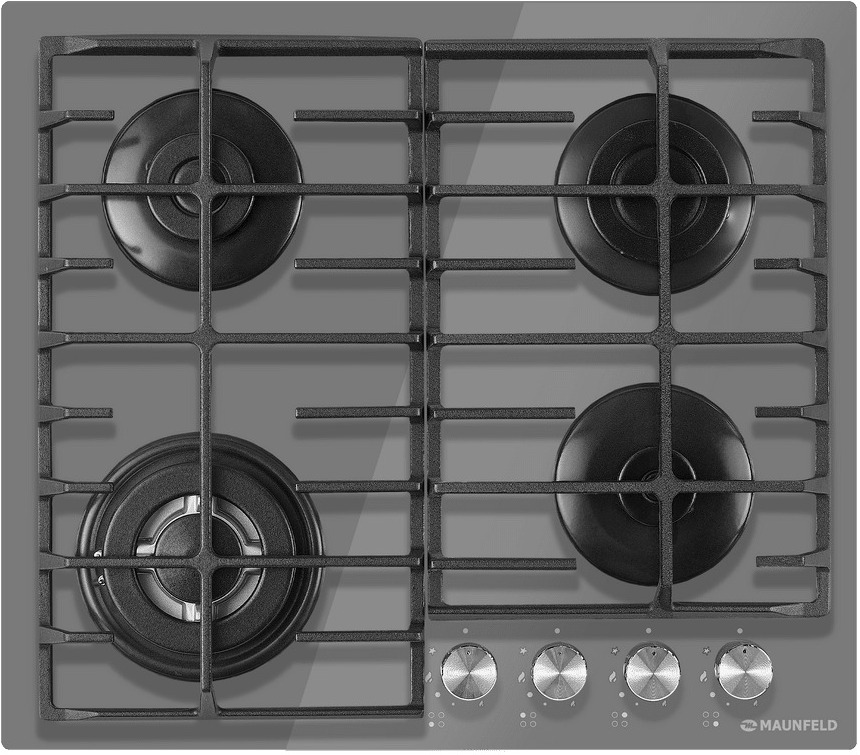 Выбор газовой варочной панели чаще всего обусловлен тем, что в частный дом или квартиру проведен именно газ в качестве обогрева. Работать с этой моделью довольно просто, так как мощность нагрева видна невооруженным взглядом — по силе огня в горелке. Количество конфорок в этой модели: 4.
