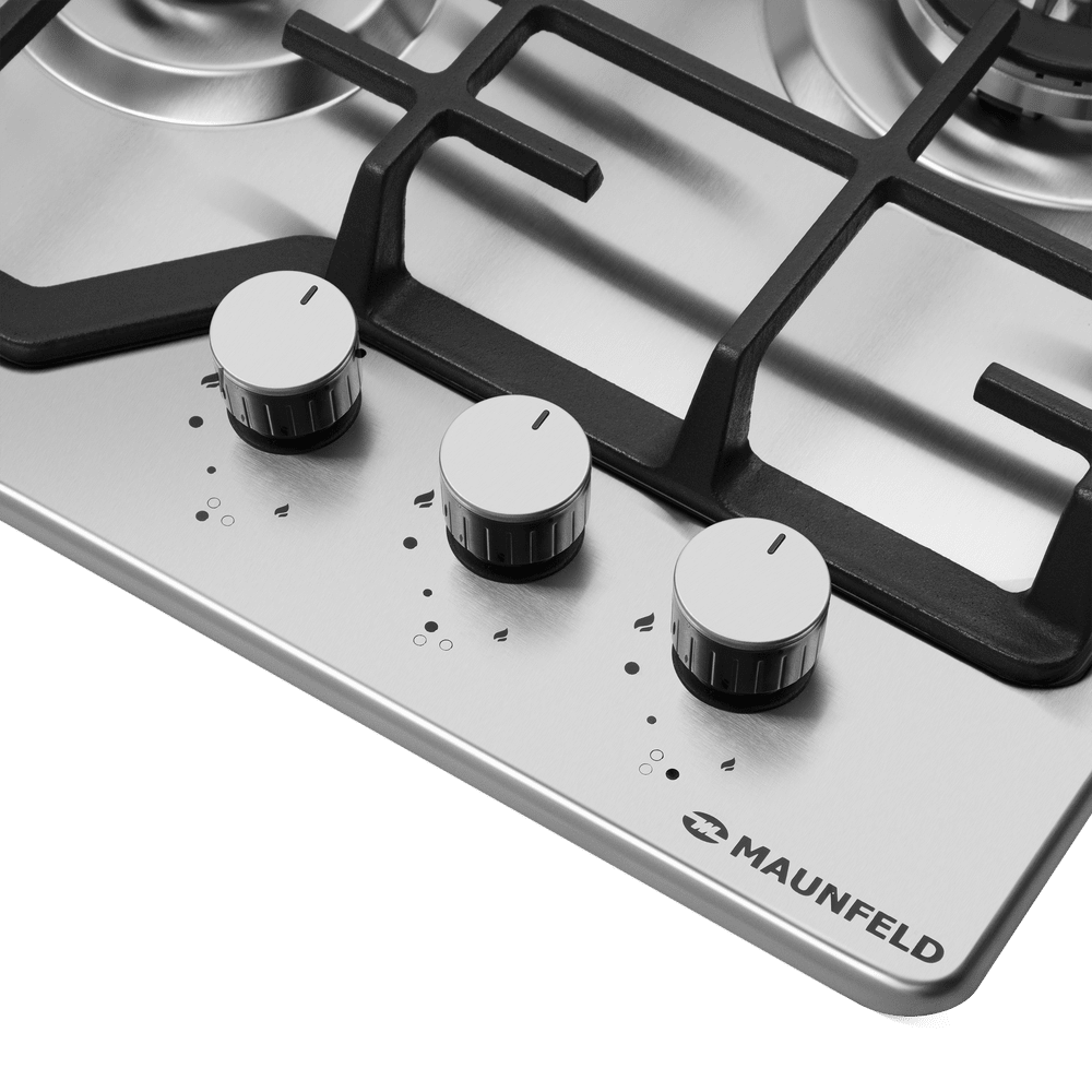 Цвет — нержавеющая сталь. Открытый огонь не страшен ни вашей посуде, ни вам, так как горелки надежно закрыты решетками. Материал самой поверхности: нержавеющая сталь. Управление этой моделью механическое. Для переключения уровней нагрева, выбора функций используются следующие переключатели: поворотные. Простая система контроля за прибором делают его более универсальным, ведь разобраться сможет кто угодно.