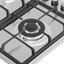 Maunfeld EGHS.95.33CS/G — независимая газовая варочная панель шириной 86 см для работы от магистрального или баллонного газа. Поверхность изготовлена из нержавеющей стали, раздельная решетка — из чугуна. Модель оснащена 5 конфорками с электроподжигом, в числе которых конфорка WOK мощностью 3,8 кВт и 4 конфорки SABAF — быстрая, две стандартные и одна маломощная. Все конфорки отличаются безопасностью и удобством в очистке. Механическая панель управления с поворотными переключателями вынесена влево. Прекращение подачи газа при угасании пламени обеспечивает функция «Газ-контроль».
