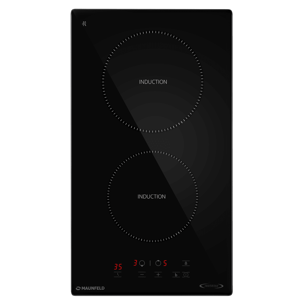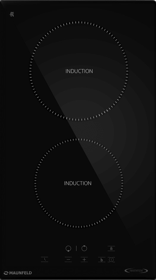 Варочная панель работает на индукционном нагреве — это значит, что повышается температура непосредственно посуды, в которой готовится блюдо. Таким образом промежуточная ступень с предварительным нагревом конфорки пропускается — сокращается время, повышается безопасность. Количество конфорок в этой модели: 2.