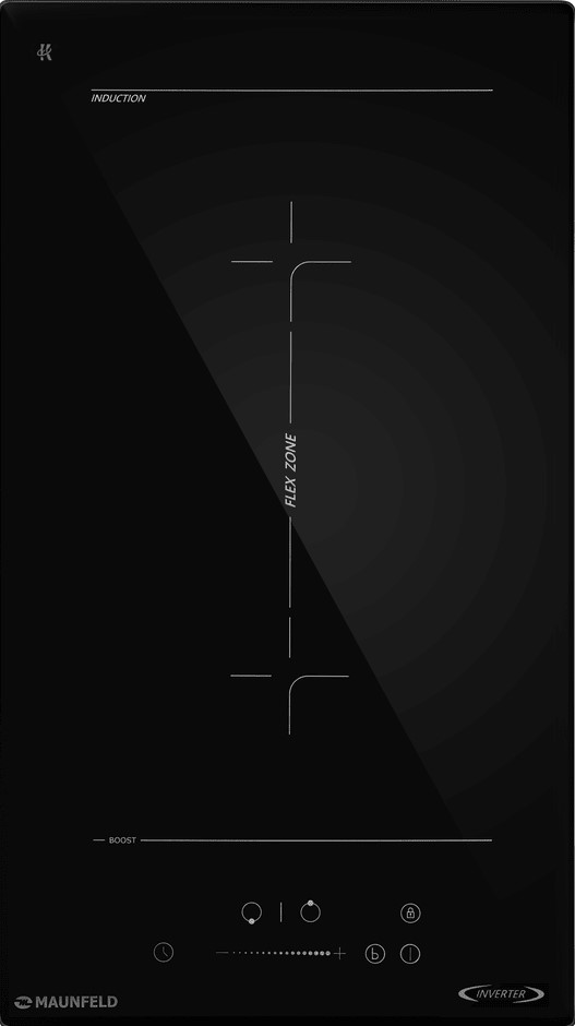 Варочная панель работает на индукционном нагреве — это значит, что повышается температура непосредственно посуды, в которой готовится блюдо. Таким образом промежуточная ступень с предварительным нагревом конфорки пропускается — сокращается время, повышается безопасность. Количество конфорок в этой модели: 2.