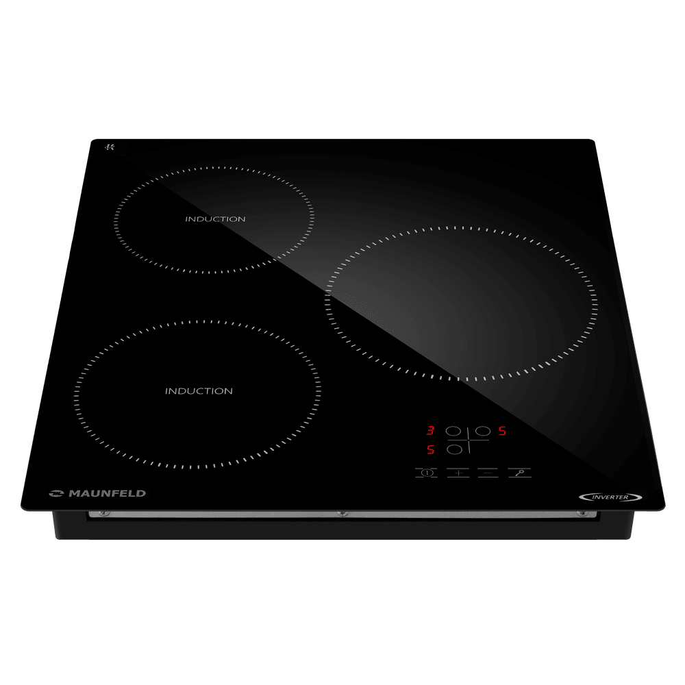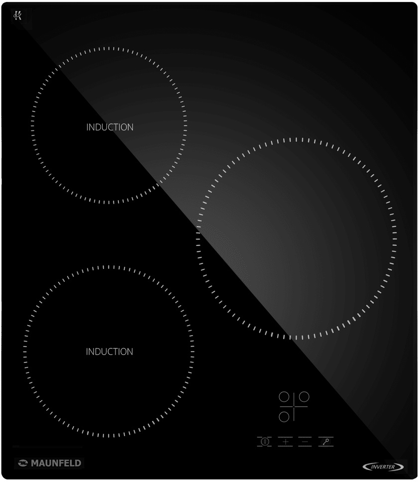 Варочная панель работает на индукционном нагреве — это значит, что повышается температура непосредственно посуды, в которой готовится блюдо. Таким образом промежуточная ступень с предварительным нагревом конфорки пропускается — сокращается время, повышается безопасность. Количество конфорок в этой модели: 3.