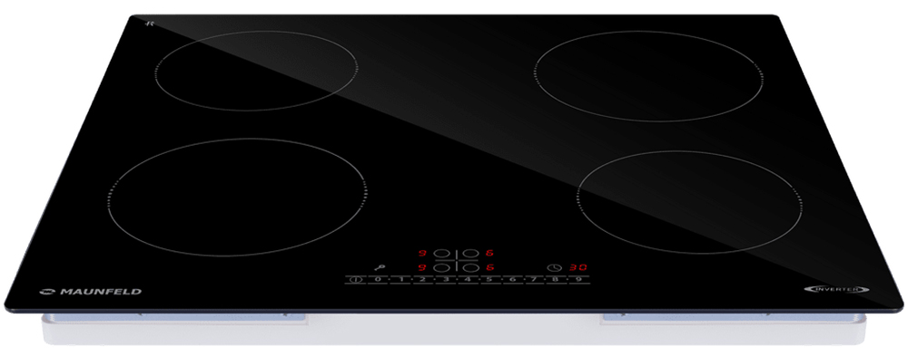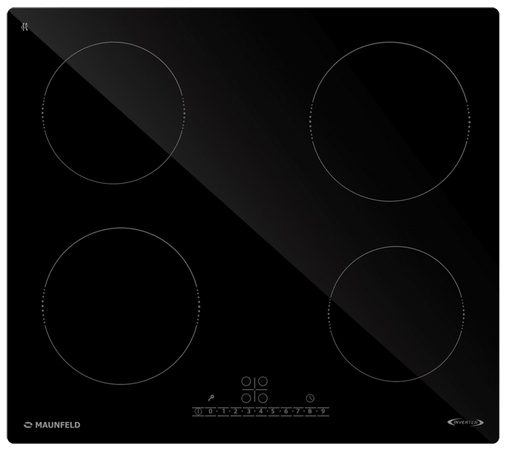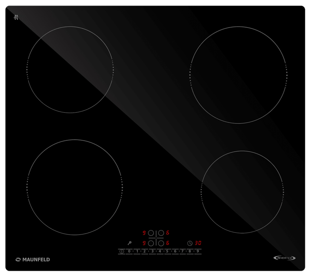 Варочная панель работает на индукционном нагреве — это значит, что повышается температура непосредственно посуды, в которой готовится блюдо. Таким образом промежуточная ступень с предварительным нагревом конфорки пропускается — сокращается время, повышается безопасность. Количество конфорок в этой модели: 4.
