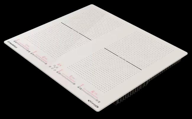 Варочная панель работает на индукционном нагреве — это значит, что повышается температура непосредственно посуды, в которой готовится блюдо. Таким образом промежуточная ступень с предварительным нагревом конфорки пропускается — сокращается время, повышается безопасность. Количество конфорок в этой модели: 4.