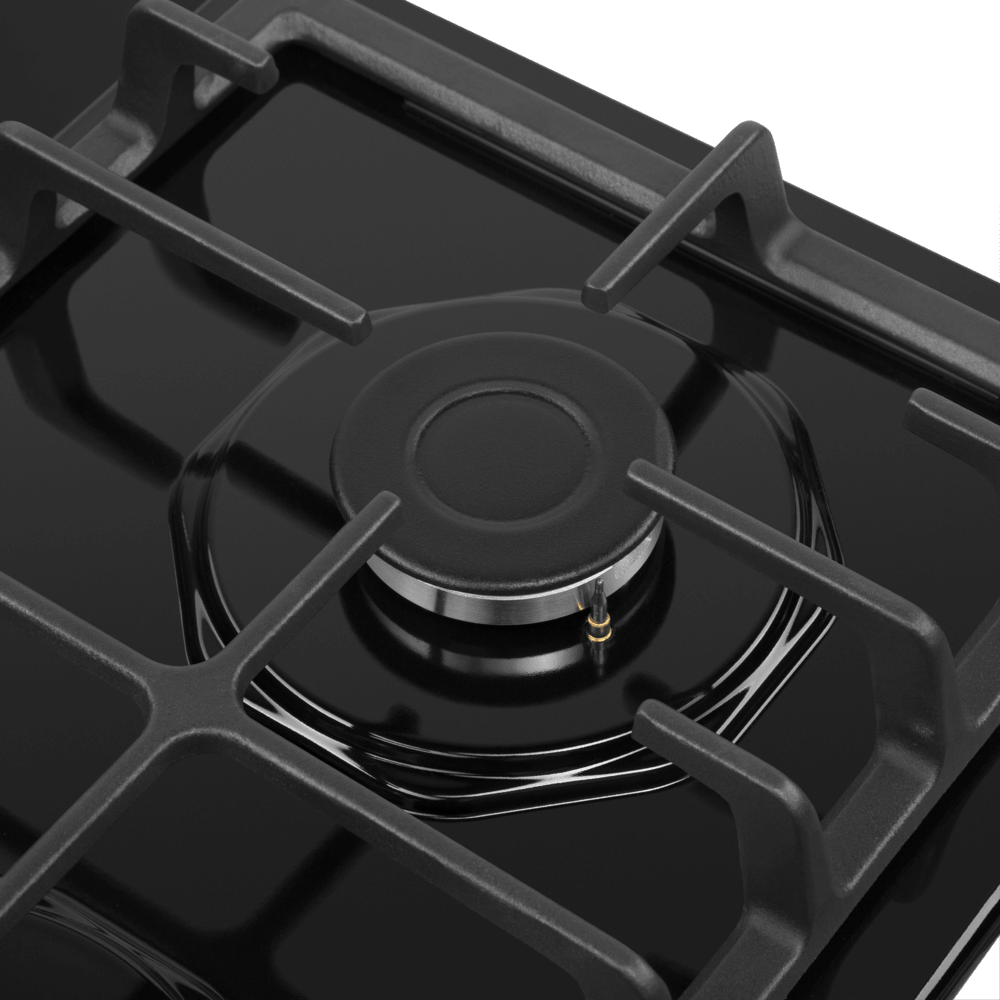 Цвет — черный. Открытый огонь не страшен ни вашей посуде, ни вам, так как горелки надежно закрыты решетками. Материал самой поверхности: закаленное стекло. Управление этой моделью механическое. Для переключения уровней нагрева, выбора функций используются следующие переключатели: сенсорные/TouchControl. Простая система контроля за прибором делают его более универсальным, ведь разобраться сможет кто угодно.