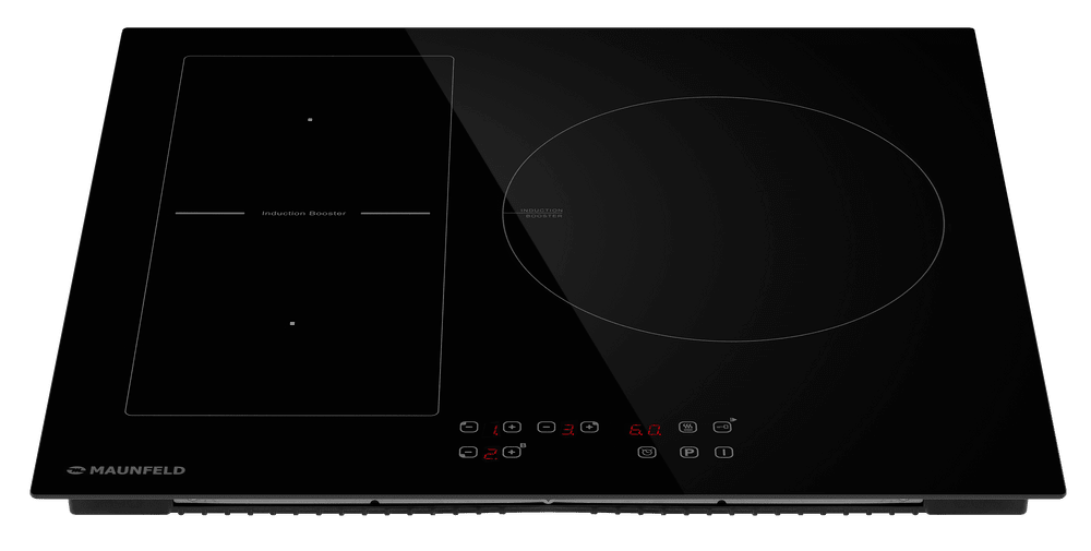 Варочная панель работает на индукционном нагреве — это значит, что повышается температура непосредственно посуды, в которой готовится блюдо. Таким образом промежуточная ступень с предварительным нагревом конфорки пропускается — сокращается время, повышается безопасность. Количество конфорок в этой модели: 3.