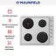 Maunfeld MEHS.64.85S — электрическая варочная панель, изготовленная из нержавеющей стали. Модель снабжена четырьмя чугунными конфорками, для управления которыми предусмотрены поворотные ручки из термостойкого пластика. Мощность нагрева можно отрегулировать на шести различных ступенях. Разный диаметр зон нагрева позволяет готовить в посуде любого размера. Конфорки быстро нагреваются и переходят на повышенную или пониженную мощность, что особенно важно при приготовлении каш на молоке и сливочных соусов. Достаточно толстая нержавеющая сталь отличается прочностью и надежностью при эксплуатации.