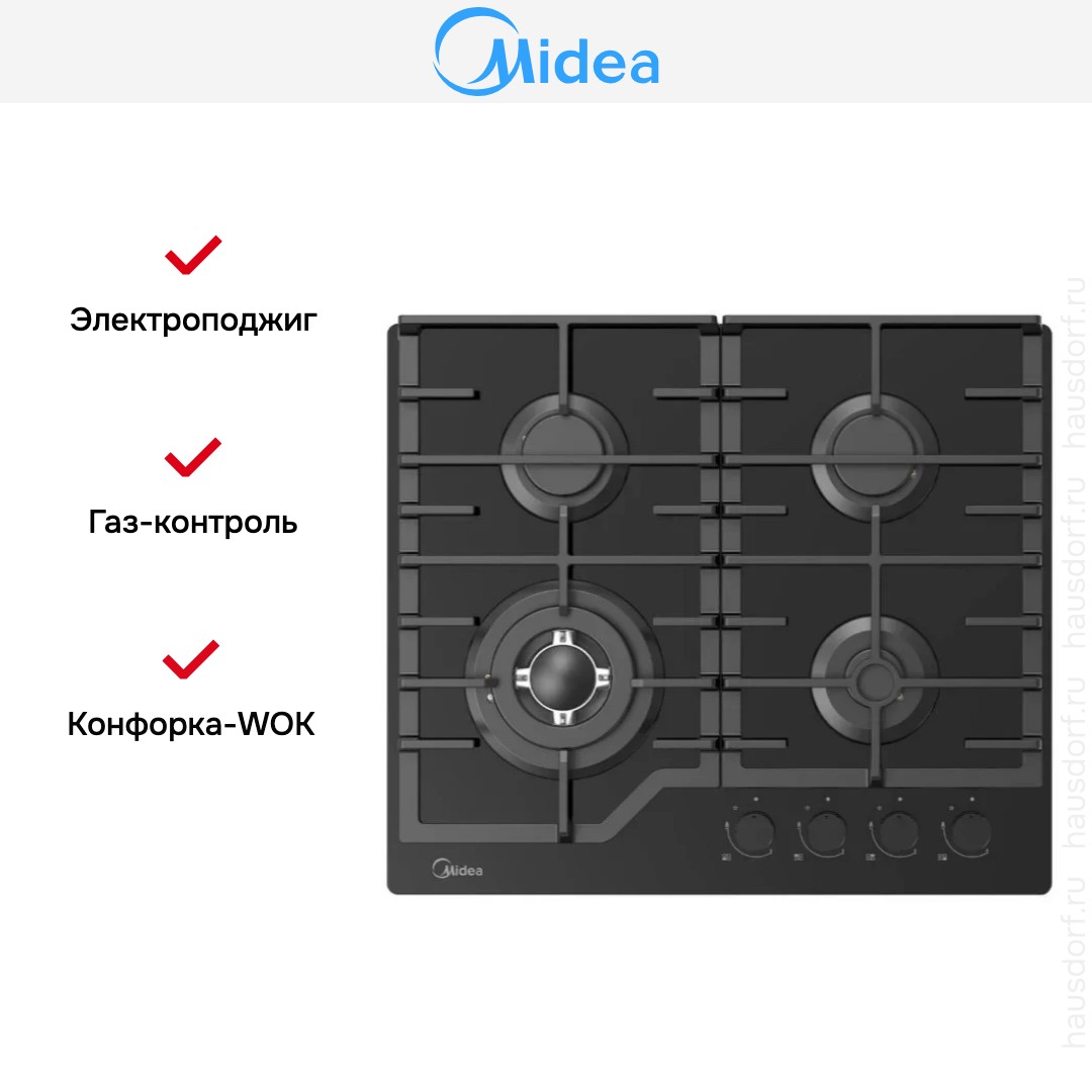 Выбор газовой варочной панели чаще всего обусловлен тем, что в частный дом или квартиру проведен именно газ в качестве обогрева. Работать с этой моделью довольно просто, так как мощность нагрева видна невооруженным взглядом — по силе огня в горелке. Количество конфорок в этой модели: 4.