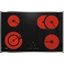 Панель шириной 76 см из черной стеклокерамики дополнена широкой рамкой из нержавеющей стали, исключающей попадание жидкость на столешницу. Стеклокерамика очень проста в очистке, для большего удобства к устройству прилагается специальный скребок. Сенсорная панель управления EasySelect позволяет выбрать зону и интенсивность нагрева одним прикосновением. Имеется 9 ступеней мощности для любого способа приготовления — от растапливания масла до закипания и интенсивного жарения. Если прибор будет случайно выключен, все настройки могут быть восстановлены в течение 10 секунд.