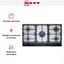 Neff T29DA69N0 — независимая варочная поверхность шириной 90 см. Черные чугунные решетки эффектно контрастируют с панелью из нержавеющей стали. Технология FlameSelect позволяет регулировать уровень мощности пламени на 9 различных ступенях. Для защиты от газовой утечки предусмотрена надежная термоэлектрическая система.