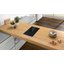 Хорошей альтернативой рамке является металлический профиль, который обычно устанавливается только спереди или сбоку. Он также не позволяет жидкости стекать на столешницу, но не «съедает» полезную площадь. Что касается варочных панелей без рамки, неизменной популярностью пользуются модели со скошенным краем. Такая обработка называется фацетной — внешняя сторона панели имеет огранку под углом 45 градусов. Такая панель очень легко чистится и эффектно выглядит, а современные методы огранки защищают края от сколов.