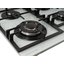 Цвет — белый. Благодаря отсутствию рамки она отлично впишется в интерьер и не займет лишнее место на столешнице, которое можно использовать для работы. Открытый огонь не страшен ни вашей посуде, ни вам, так как горелки надежно закрыты решетками. Материал самой поверхности: закаленное стекло. Управление этой моделью механическое. Для переключения уровней нагрева, выбора функций используются следующие переключатели: поворотные. Простая система контроля за прибором делают его более универсальным, ведь разобраться сможет кто угодно.