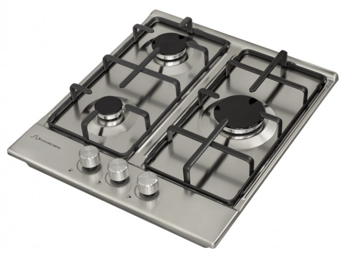 Выбор газовой варочной панели чаще всего обусловлен тем, что в частный дом или квартиру проведен именно газ в качестве обогрева. Работать с этой моделью довольно просто, так как мощность нагрева видна невооруженным взглядом — по силе огня в горелке. Количество конфорок в этой модели: 3.