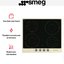 Индукционная варочная панель с 4 конфорками разного диаметра и усилением мощности Booster. Серия Victoria: черная поверхность с кремовой рамкой и поворотными переключателями с эффектом нержавеющей стали. Защищена от перегрева и сбоя настроек благодаря автоматическому отключению и блокировке управления.