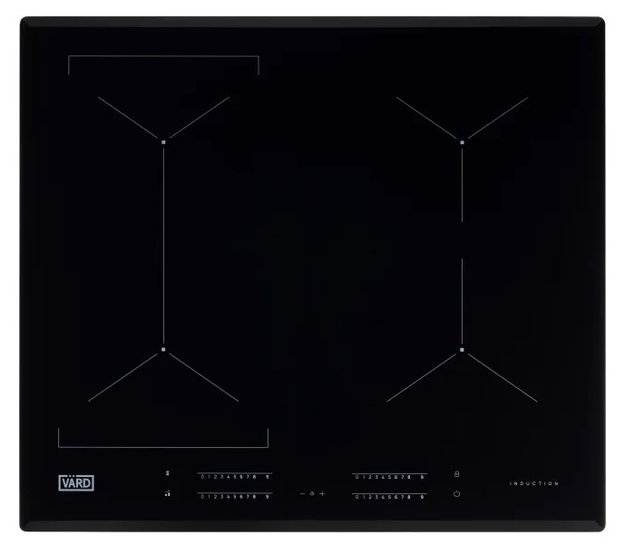 Варочная панель работает на индукционном нагреве — это значит, что повышается температура непосредственно посуды, в которой готовится блюдо. Таким образом промежуточная ступень с предварительным нагревом конфорки пропускается — сокращается время, повышается безопасность. Количество конфорок в этой модели: 4.
