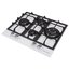 Выбор газовой варочной панели чаще всего обусловлен тем, что в частный дом или квартиру проведен именно газ в качестве обогрева. Работать с этой моделью довольно просто, так как мощность нагрева видна невооруженным взглядом — по силе огня в горелке. Количество конфорок в этой модели: 4. Горелки с тройной короной имеют несколько ступеней нагрева — в зависимости от них образуется несколько кругов пламени.